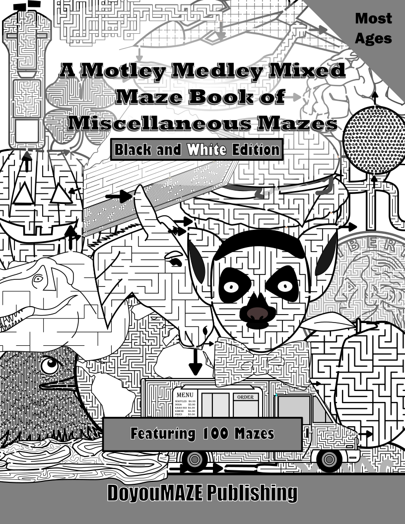 Each maze makes up a page of a book. You can download the individual mazes you want, or the entire 100 page book ! Broken down into 4 sections: Animal Mazes, Food Mazes, Misc. Mazes, and a collection of mazes of things that rarely get mazed ! Includes mazes of all levels from very easy to difficult to solve.