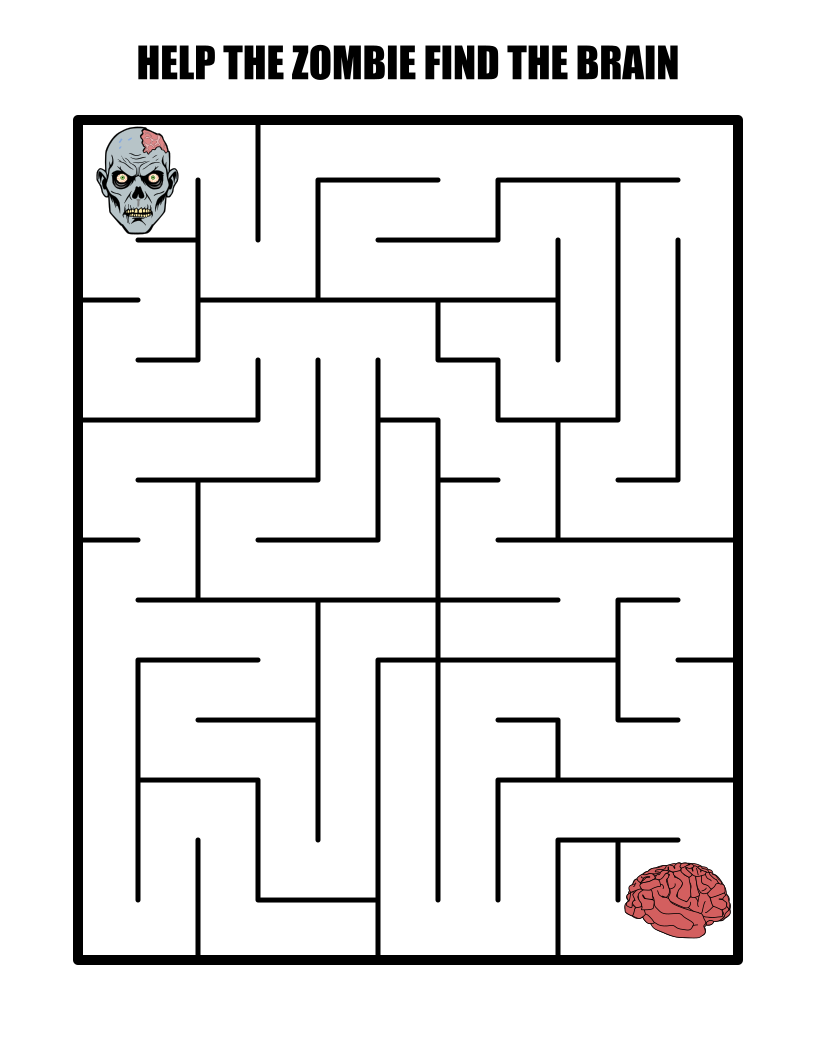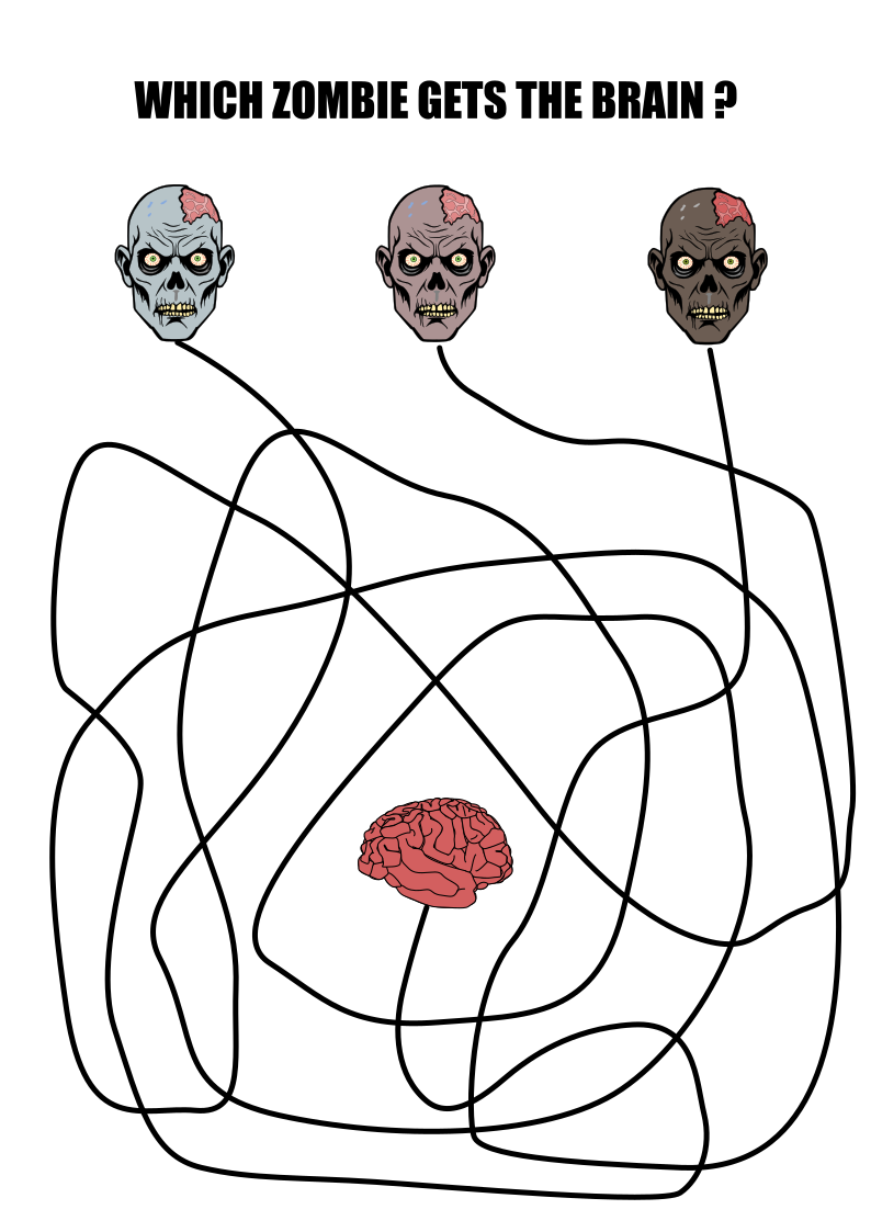 Which Zombie gets the brain line leads maze - if you like this type of maze check out the line leads maze section.