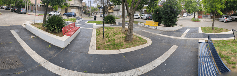 I have visited mazes/labyrinths in Singapore, Thailand, Taiwan, Mexico and Spain. Now, I can add Uruguay to the list. There is a small plaza in the middle of a crossroad that converted its walkways into a labyrinth. It is called Plaza Manuel Freire. While I cannot find when it was converted to a walkable labyrinth, I can find old pictures when it was just regular walkways and benches (as recently as 2020 on Google Maps). I wouldn’t call it well maintained but I did enjoy walking it. The initial sign shows the labyrinth pathway best, with extra entrances allowing you to walk it in all 4 directions. Here are my pictures of El Laberinto de la Plaza Freire: