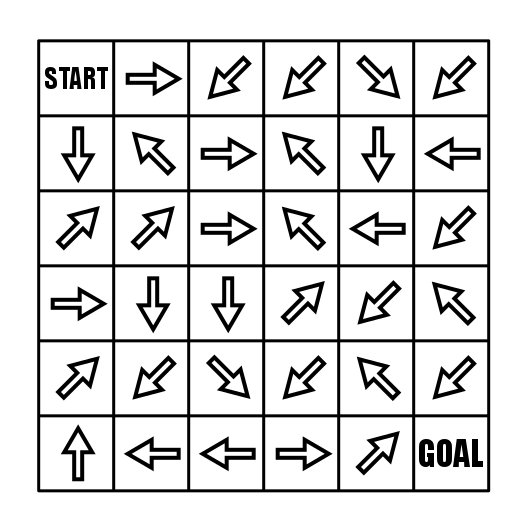 Draw Arrows that will create a solution to the Arrow Slide Maze. Now, this maze can become so difficult it is virtually unsolvable if you choose to make it that way. If you create only one correct path and have a large maze template you are working in the chances of solving without going backwards are extremely low. My example reflects that….try to solve the final on your own and see.