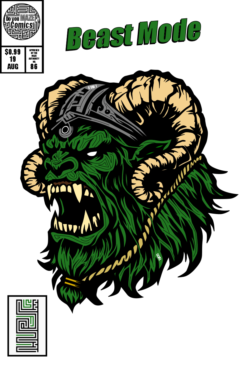 Issue #86 in my comic book cover series is called Beast Mode and features the maze of a beast warrior. I think this is my first comic where the background is a clean bright white. This is not a thing you would want to get into a fight with.