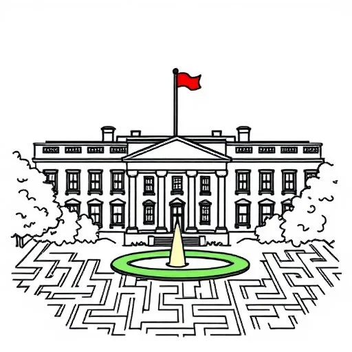 Prompt 3 - Draw a difficult maze of the White House pixel art style
