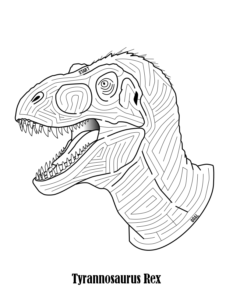 T-Rex Maze and Coloring Page - This is part of a Dinosaur Maze and Coloring Book you can find in my free book section. It has 20 pages.