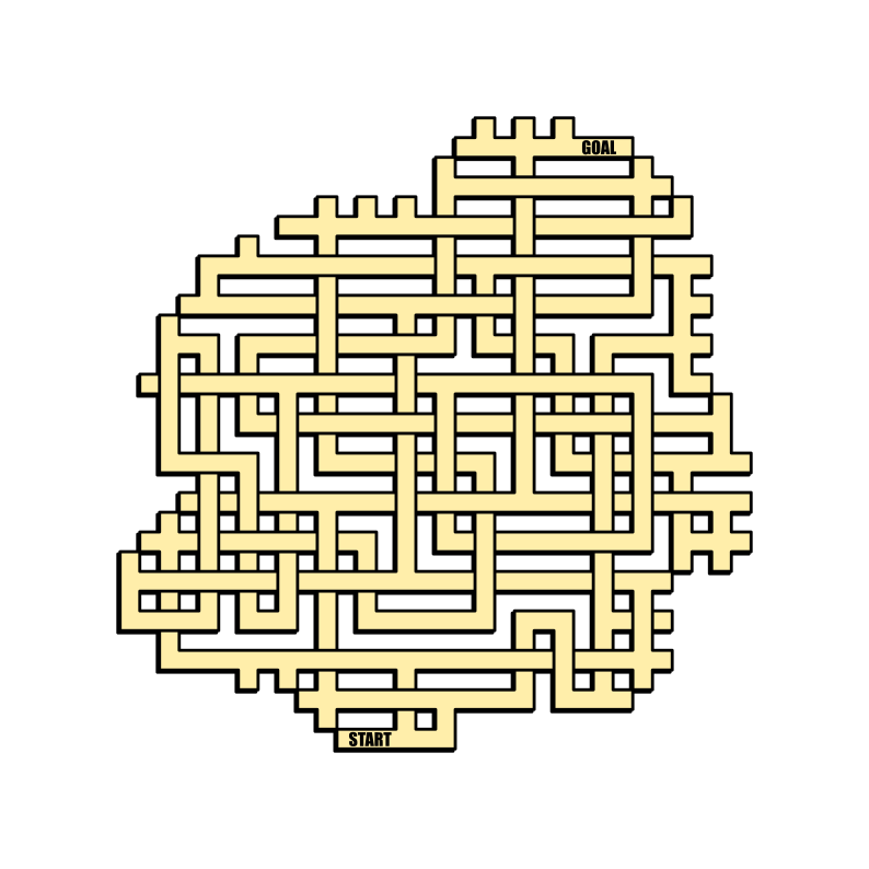 A little bit of information on this maze: The difficulty level is easy and the maze construction is a Mixed Section Maze construction. The top portion of the maze is a Free Drawn, while the box portion is Vertical construction.